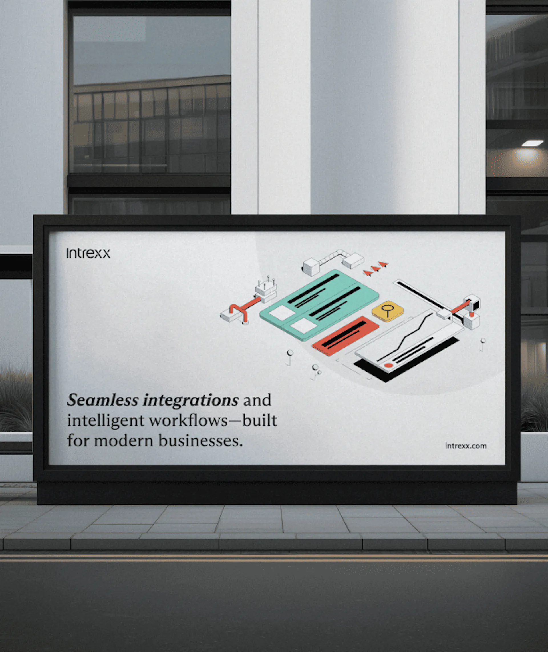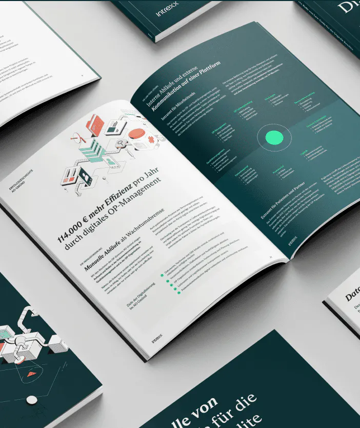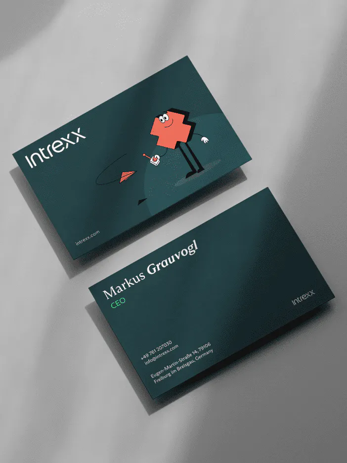 The Intrexx brand identity is anchored in two mascots, a flexible illustration system and clear messaging without any fuss. These elements can be adjusted and expanded per industry, giving the sales and marketing team a visual and verbal toolkit that speaks directly to each sector rather than forcing one generic look across all of them.